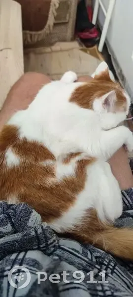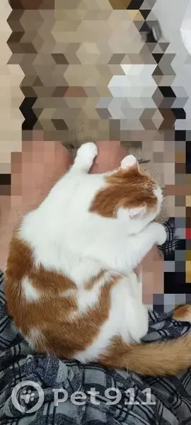 Убежал из дома в районе 22:00. Средних размеров, белый с рыжими пятнами на спине и голове. Рыжий хвост. 7 лет. Пугливый, вряд-ли убежал далеко. Абсолютно домашний, к улице не приспособлен.