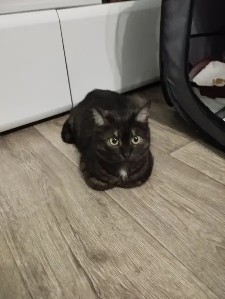 Пропала вечером из квартиры. Видимо выскочила когда кто-то выходил. Кошка черепахового окраса, глаза зеленые. В левом глазу на радужки коричневое пятнышко. Помесь со сфинксом. Залысинки около ушей. Хвост ближе к кончику не сгибается. Кошка старенькая. Спина и хвост лысеют.