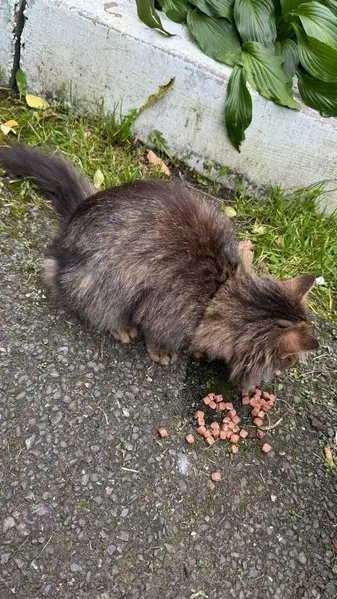 Зимой обнаружили в подвале кошку. Сейчас живет во дворе. Центральный район г. Красноярск.