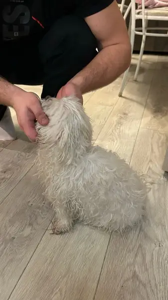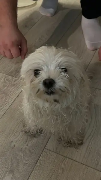 Бело-кремовая, уши кремовые. Мелкая, высота в холке см 25. Нейлоновый цветной ошейник. С испугу убежала на территории Хим. Комбината Енисей. Сегодня 21.07 видели на перекрестке 26 бакинских- Рейдовая. Побежала под ворота жд путей на территорию бывшего ЦБК. Может выйти в гидролизном районе, или техническом.