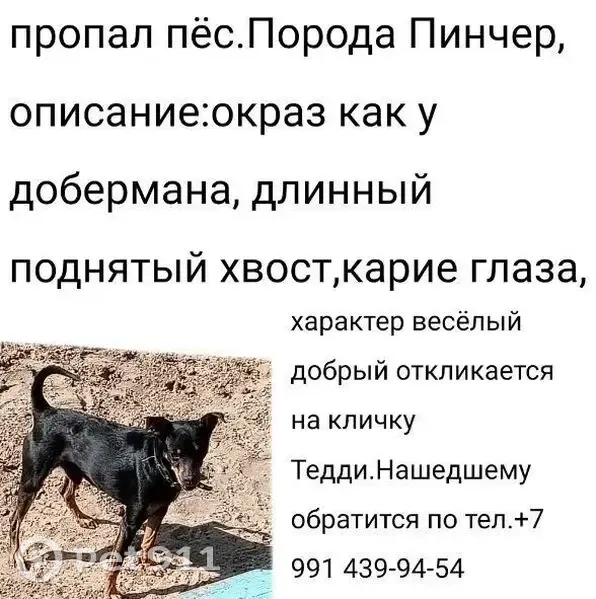 Окрас как у добермана хвост длинный на лапках коричневые носки есть коричневые брови при пропаже был одет чёрный ошейник откликается на кличку Тедди привлечь внимание можно едой пропажа произошла неожиданно гуляли на поводке потом вырывается с поводка и убегает Обычно далеко от дома не уходит находится рядом всегда находим сами помогите найти собаку на шее есть хохолок от ошейника