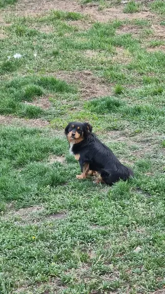 Черная шерсть, с светлым брюхом, сторожевая собака