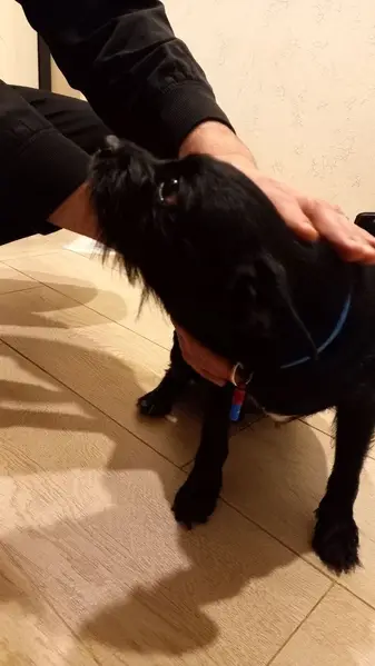 Дворняжка. Высокая и худенькая. Чёрная, белое пятно на груди а так же кончики лап. Гуляли среди гаражей, а когда начали идти домой, собака будто сквозь землю провалилась. Обыскали всё, проверили всё овраги... Ничего. Скорее всего убежала в СНТ.. Это был бы лучший исход ситуации.