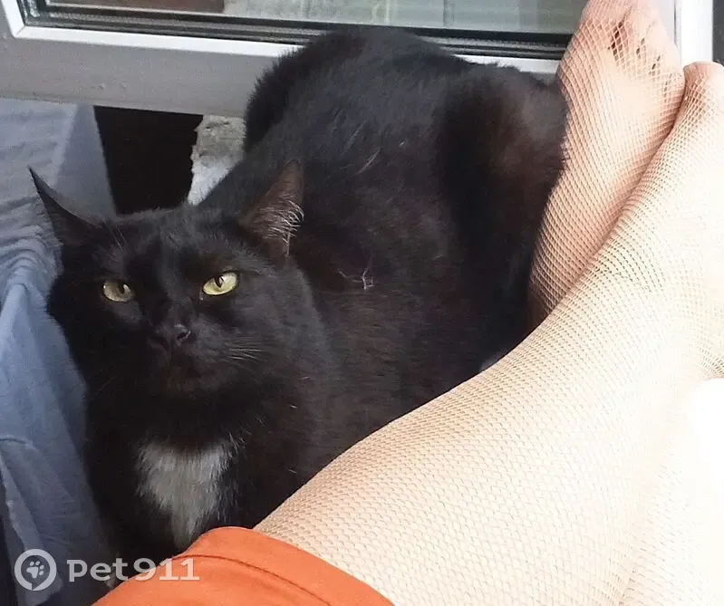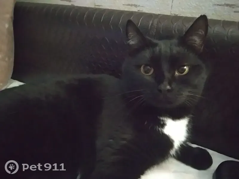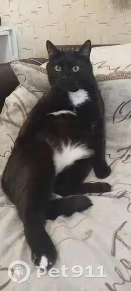 Черный с шоколадным отливом, ярко жёлтые глаза, белая грудка белые подмышки и белый пах, один палец на задней лапе белый, шерсть гладкая, густая, общительный, разговорчивый, голос писклявый звонкий,