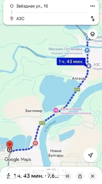 Собака бегает вдоль трассы. Порода хаски с голубыми глазами. Надет черный ошейник, человек который видел собаку адресник не нашел. Собака бежала вдоль трассы достаточно долго вместе со стримером. Их совместный путь начался с красных Баррикад и закончился в районе Бахтемир у АЗС Технотэк. Последний раз на видео ее видели там, потом собака куда-то убежала. Прикладываю совместный путь стимера и собаки (скрин). Надеюсь песик вернется домой
