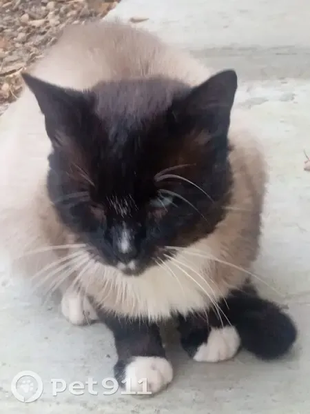 Найден кот, похож на какую то сиамскую породу, 2 или 3 дня находиться на одном и том же месте, к себе не попускает, пытается убежать, но если оставить еду ест. Худой.