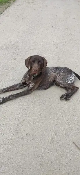 Типичный окрас породы Курцхаар - шоколадный в крапинку, везли к ветеринару, у нее острый гастрит, забрали из ужасных условий содержания, ей примерно 7 лет, очень умная собака, НЕ охотница, стерилизована, сбежала в лес во время выгула в станице Крепостной, Очень просим поддержать нас в ее поиске, она очень худенькая, нуждается в лечебном влажном корме, в лесу одна долго не протянет, должна выйти к людям!
