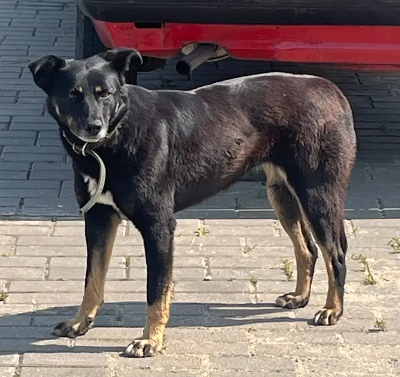 Несколько дней уже вижу собаку (девочка) в д. Крутая. Дворняжка, черно-белая, на загривке белое пятно. Без ошейника, но шерсть на шее примята, видимо он был.
