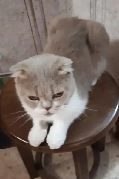 Найден котёнок примерно 2 месяцев серый с белой грудкой и белыми лапками. Похож на шотландская вислоухую. Видно, что домашний.
