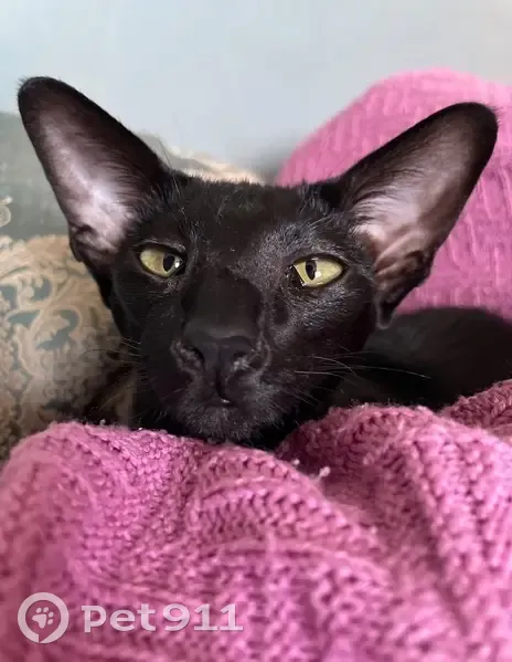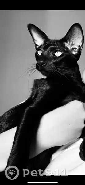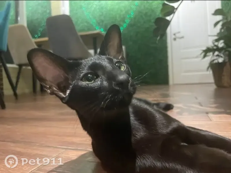 Черная небольшая кошечка, ей год. Ориентальная порода, большие зеленые глаза и уши. Худощавое телосложение, высокие лапы. Домашняя, ни разу не была за пределами двора. Бриться машин и посторонних. Сейчас течка, Меня не было дома и семья не уследила за ней. И она пропала со двора