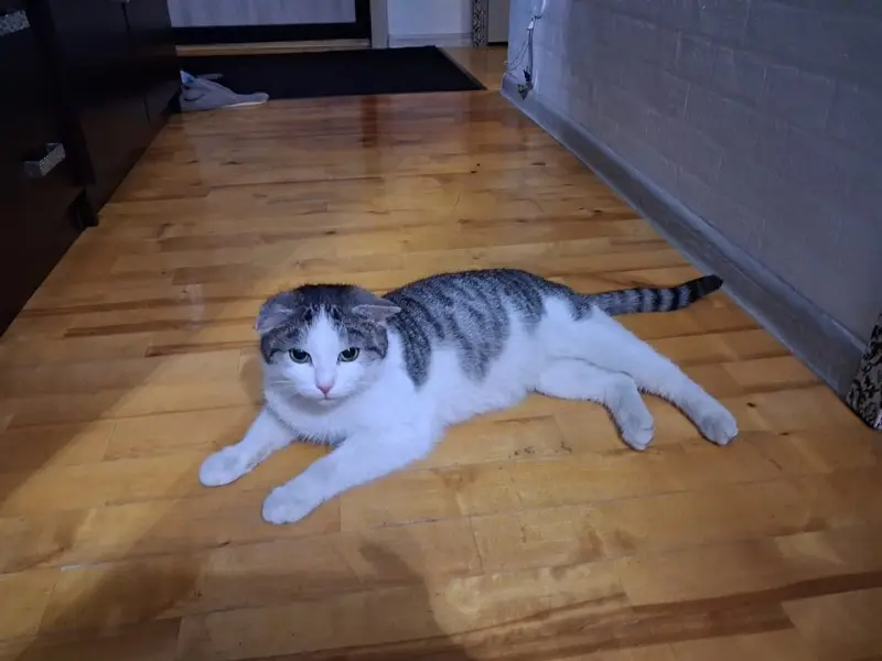 Белое пузико , розовый нос , темно серая на спинке. Вознаграждение гарантирую , по нему плачут дети