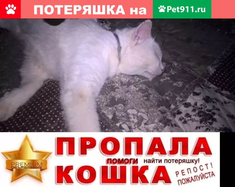 Объявления о пропавших и найденных животных, Кстово, фото: Пропала белая кошка с разными глазами в Кстово, Нижегородская область