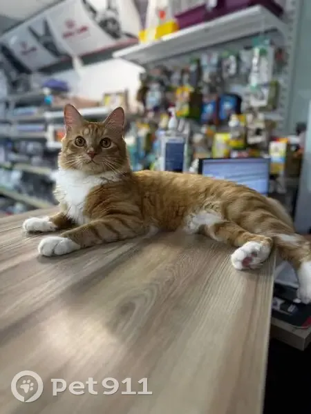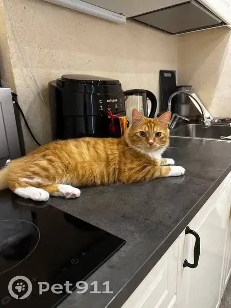 Рыже- белый кот Очень пушистый, упитанный котик На носике есть белое пятнышко! Лапки, шея и животик белые. Спинка рыжая, лапки полосатые. Очень любопытный и активный, к людям может пойти, но не сразу. Возможно выпрыгнул с 3 этажа.