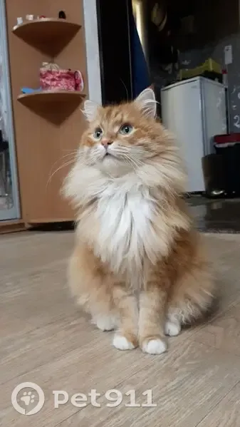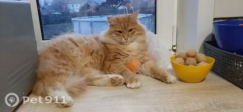 рыжий пушистый кот. Не вернулся домой. Хрипло мяукает