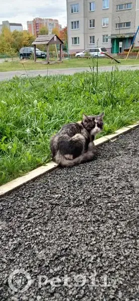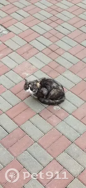 Трёхцветная, чистая, не травмирования, но исхудала. Местные жители говорят, что бегает тут давно, прячется под машинами. Видно что домашняя, похоже что девочка.