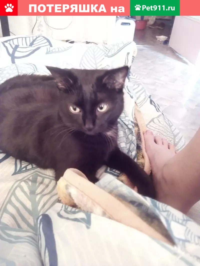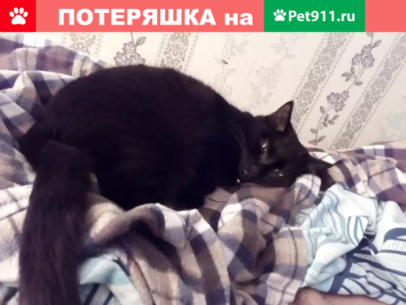 Черный котик, красный ошейник, белое пятнышко на шее,