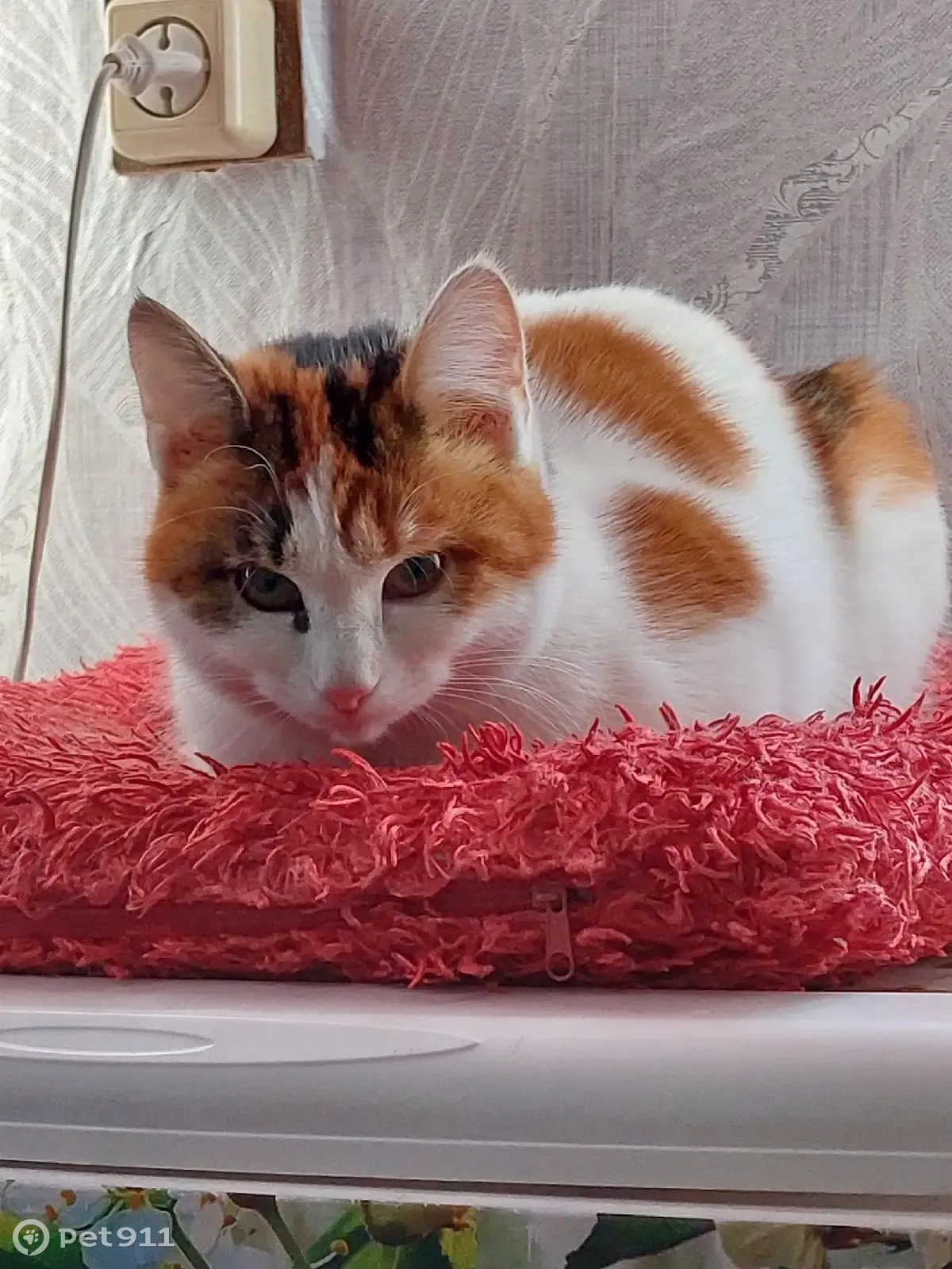 Кошка, девочка, 1 год и 2,5 месяца, трехшерстная, в основном белая, рыжие и чёрные пятна на спине, смешанный хвост, свободно гуляет на улице. 10 мая ночью вышла гулять как обычно, вероятно испугалась чужой зашедшей кошки, испугалась и убежала. Больше не возвращалась, искали её 11 мая целые сутки, с утра до вечера - ни следа.