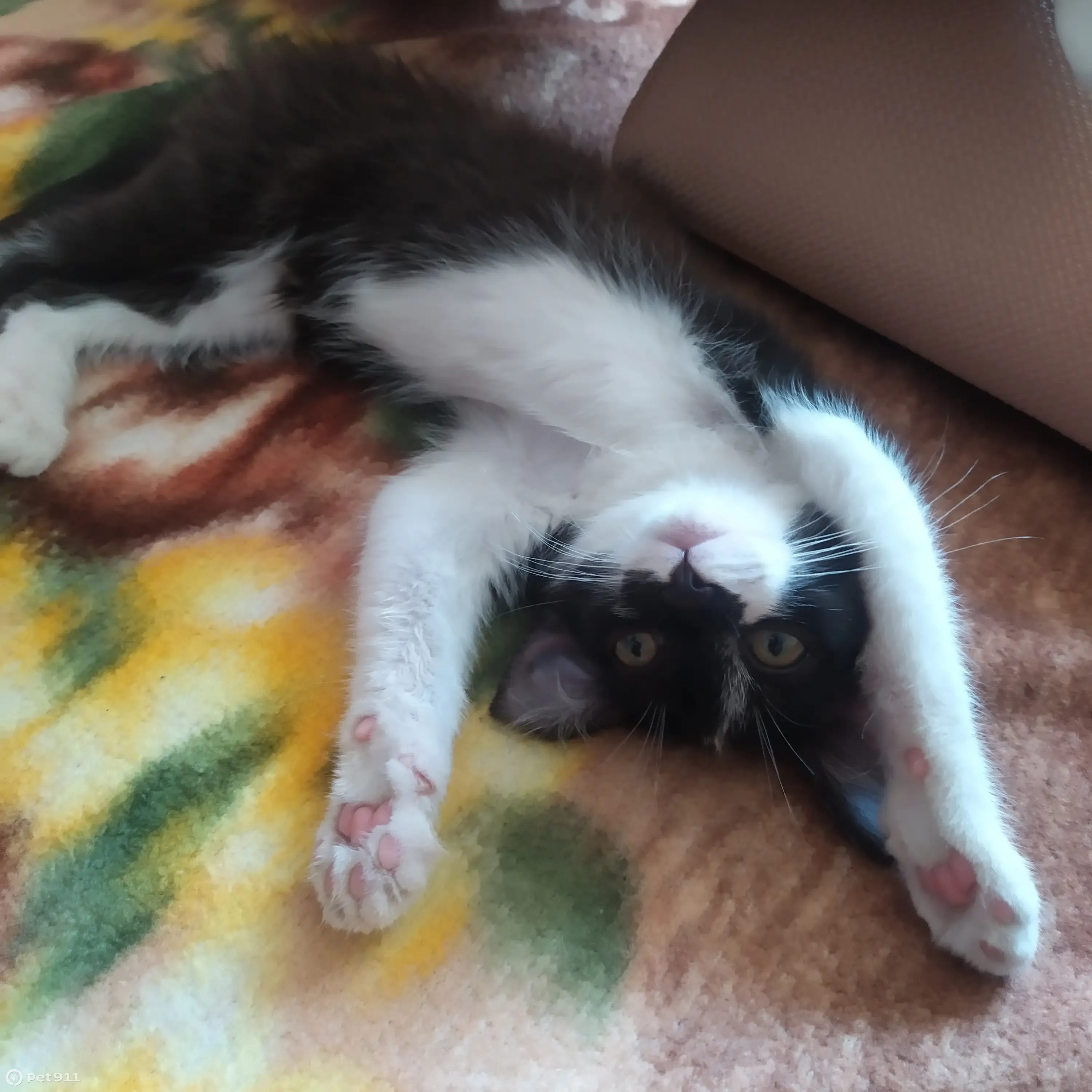 Окрас: черный; лапы, живот и нижняя челюсть белые