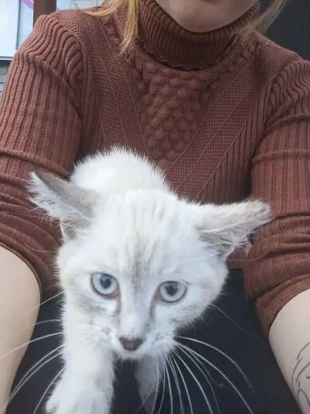 девочка,окрас белый с серым,хвост полностью серый с лапками,ночью была дома,утром уже не было,думаем,что выпрыгнула в окно за чем то и окно было открыто без сетки