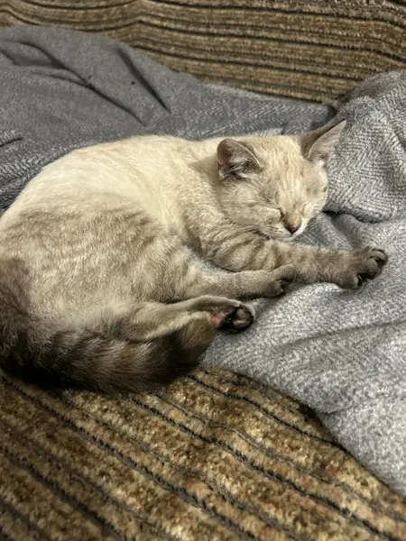 Ласковая, игривая, особенности породы: приспущенный взгляд, глаза кажутся жалостливыми и грустными, не стерелизованная, голубые глаза и тёмно-серый хвостик