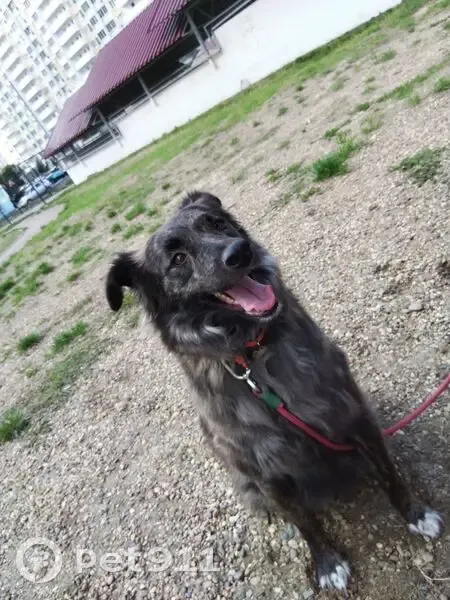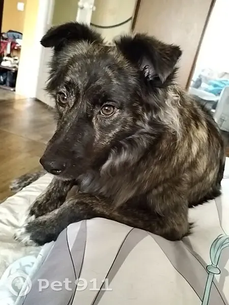 Аусси, бурый окрас, серебристый подшёрсток, белые носочки лап. Среднего размера. Домашняя, живёт в квартире, побаивается мужчин, может на них рычать, но не кусается. Сейчас напугана может убегать от людей.