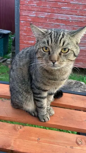 Кошка, девочка. Окрас бежевый с чёрными полосками, ласковая и очень общительная. На шее ремешок с колокольчиком. Пришла сама, две ночи спит на крыльце.