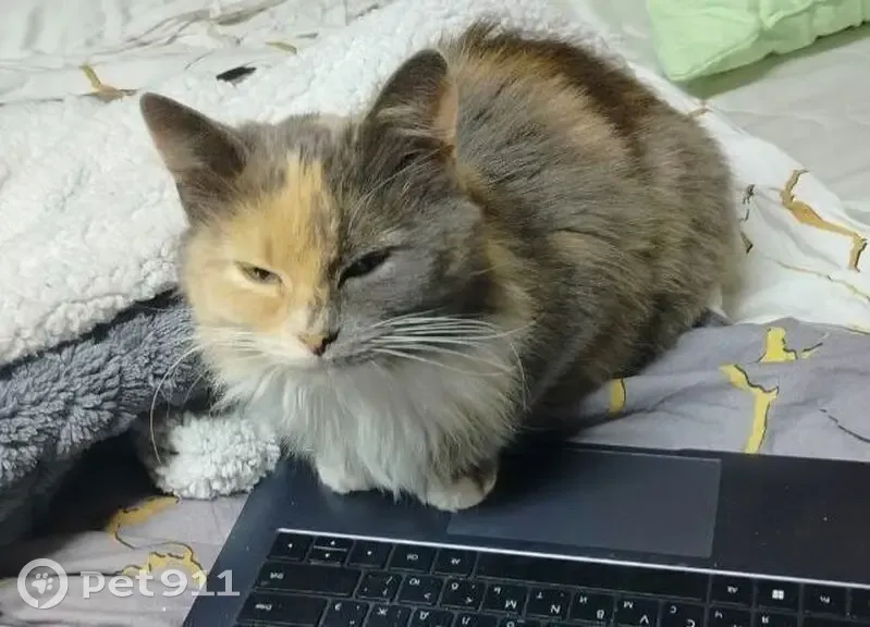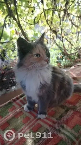Кошка, прибежала на участок, по сей деть находится на нем. Трёхцветная(рыжая, темно-серая, белая), тактильная, общительная, ручная, ухоженая явно домашная, ко всему приучена, возможно стирилизованая.