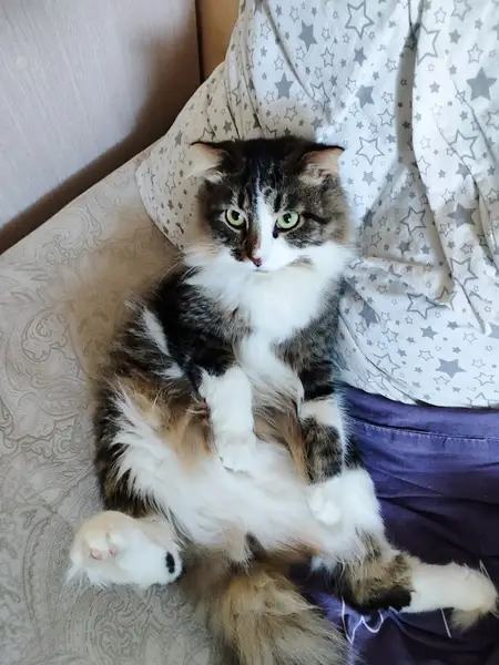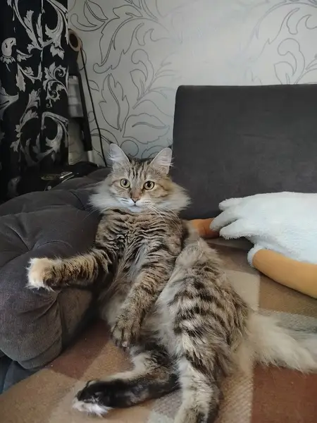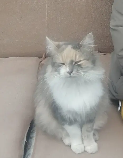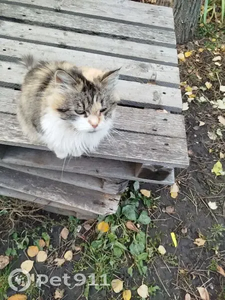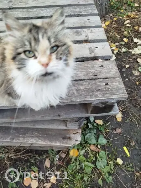 Трёхцветная кошечка с красным ошейником для блох, пристроилась во двор по адресу Белинского 25, может это Ваша кошка и она на самовыгуле, напишите, чтобы мы не волновались. А то уже 10 дней в одном дворе и в дождь и в холод. Кошечка очень ласковая, нежная.