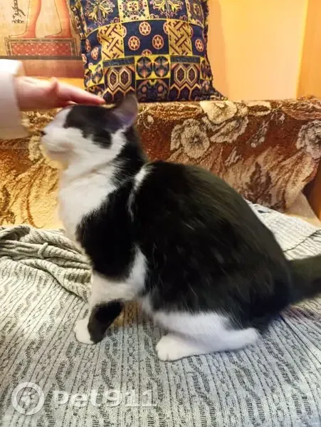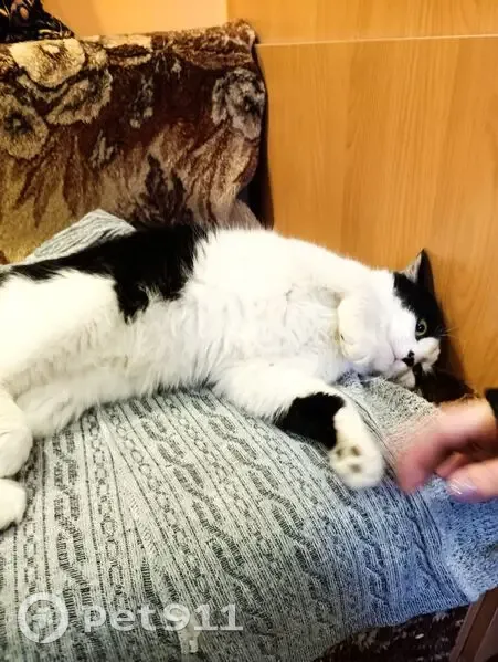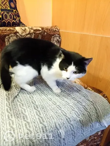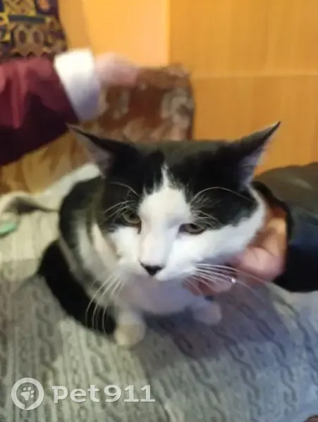 Найден кот Чёрно белый окрас на вид один год Домашний возле школы 21 сидел недалеко от входа очень замерший! Приученный к лотку, от людей не отходит!!!