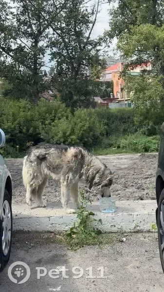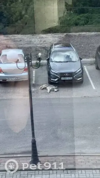 по адресу: 9 января, зд. 1 (здание Фабрика окон) примерное время в 12:30 — на парковку пришел старый хаски с ошейником, возможно потерялся, заблудился. Очень слабо передвигается, видно что задние лапы слабые, а одна в ранке и на нее еще хромает. В 12:45 пёс ушел в сторону кольца на малых.