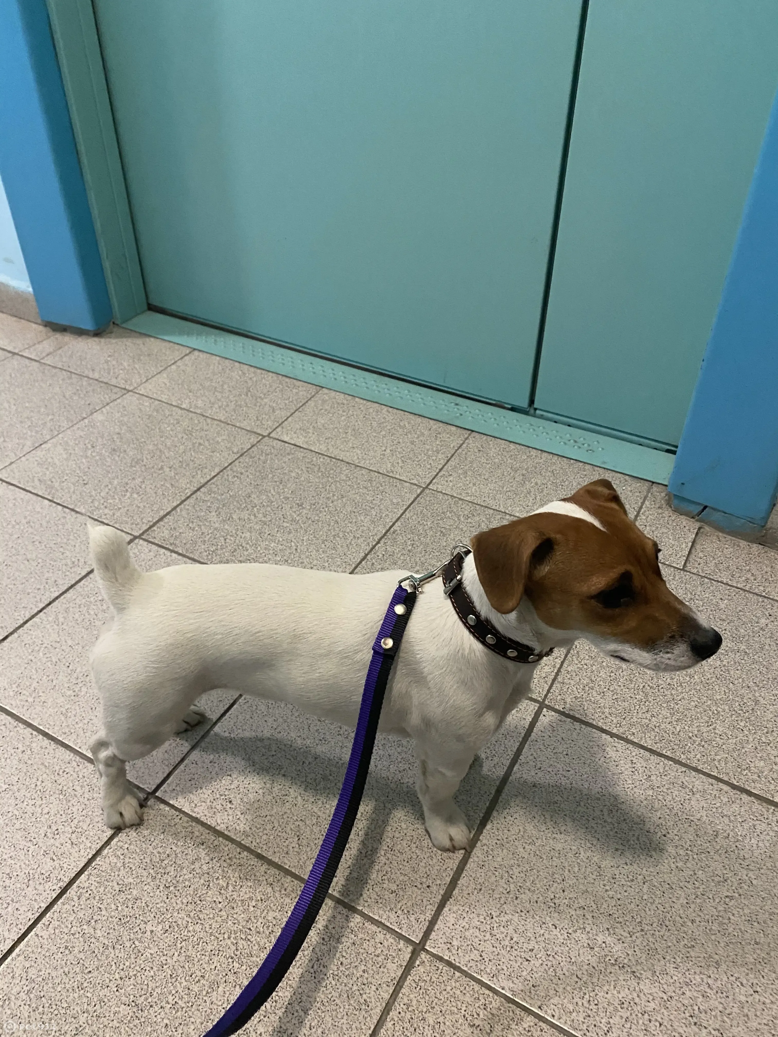 Найдена собака-девочка. Породистая Джек-Рассел. Найдена около 24 дома по проспекту Победы, около 17:40. Без ошейника ( на фото мой ошейник и поводок). Узнавшим свою собачку просьба позвонить в ближайшее время.
