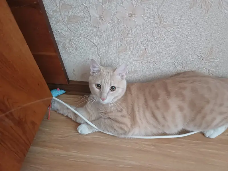 Котик 8 месяцев, абрикосового цвета, серый ошейник. Отзывается на кличку "Марсик"