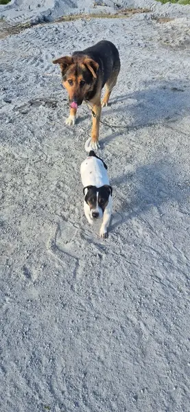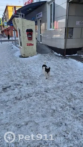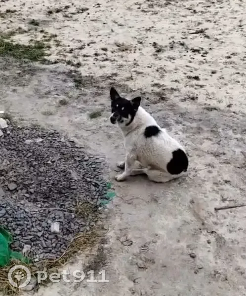 Окрас ьело черный , пятнышко чёрное на попе , не высокого роста, тело вытянутое . Скорее всего вывезли из двора