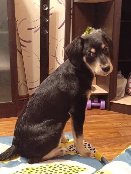 Окрас чёрный, молодой, отпустил погулять, кличка Бабай, характер дружелюбный, редко лает