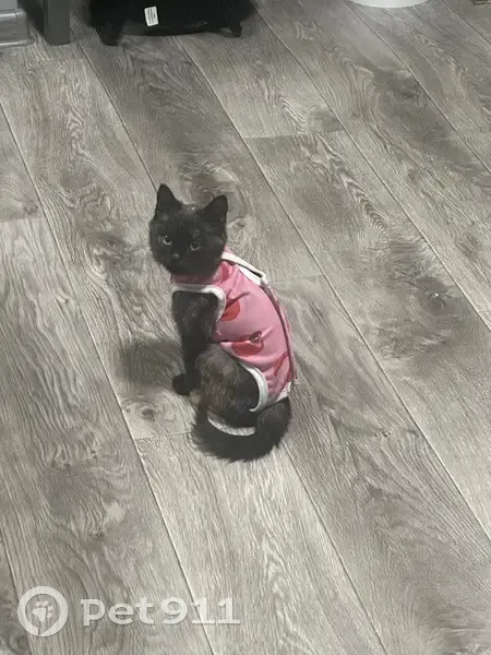 Котенок девочка, после операции. 28 числа нужно было снимать швы. Костюмчик (для поддержания швов) на шее начинает сдавливать пока растет котенок . Он не расстегивается, только срезается! Необходима медицинская помощь! Специальное питание! Увязалась за прохожими дошла до почты а дальше никто не видел