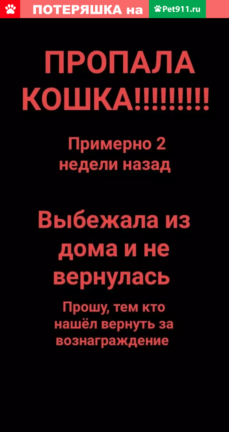 ‼Пропала кошка‼ В засвияжском районе,на улице Автозаводской выбежала из подьезда. Обычно когда выбегала, ходила по двору, и мяукала, в этот раз ушла и не вернулась. Окрас у нее серый, звали :Бусинка то есть Буся, на имя не откликается, откликается только на кс-кс-кс. Окрас у неё серого цвета, фенотип шотланской вислоухой. Кто найдёт или увидит просьба позвонить по телефону: Или написать мне в лс в вк. https://vk.com/a.esenina2003