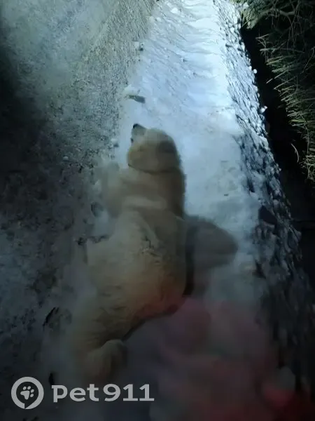 Светлый. Очень крупная. Пушистая.На ошейнике нет бирки. Побежала дальше по дороге. Чистый. Как только убежал