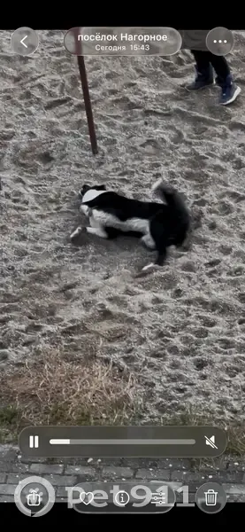Восточно-европейская лайка, кабель, приблизительно средних лет, со следами, возможно зелёнки, на шее. Забежала во двор в районе 16:00 Калининградского часового пояса, скажем так. Послушный, дружелюбный, прекрасный. Убежал из поля зрения в неизвестном направлении спустя 45 минут.