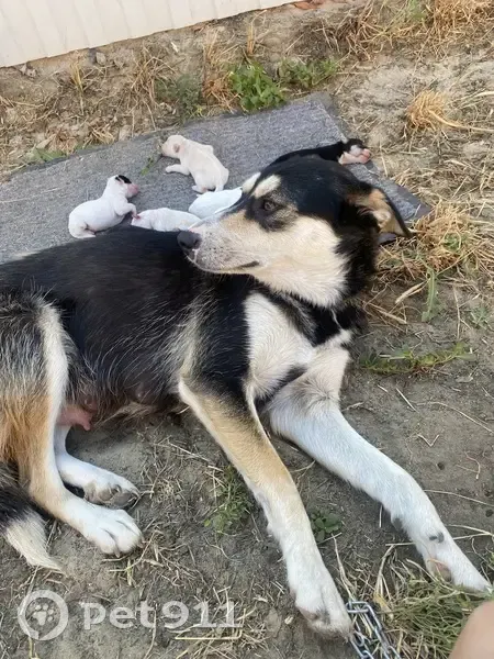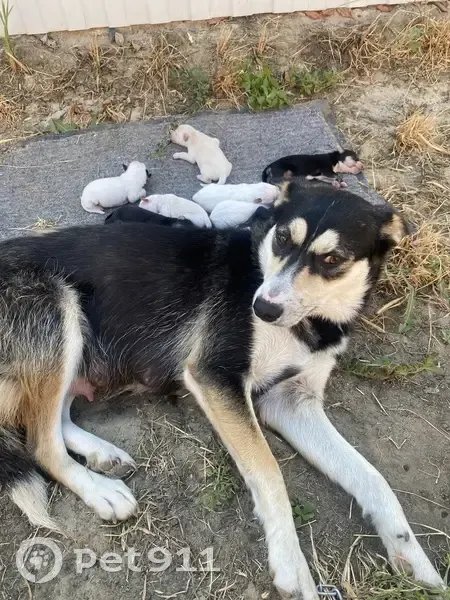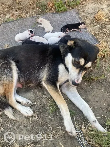 Добрый день, увязалась собака смешанная с хаски, пришла жить у меня во дворе. Оказалась беременная. Пришлось посадить на цепь, так как жаловались соседи, что гадит у них во дворе.. Заботилась, кормила, почистила от блох и клещей. 30.07.25 родила 9 щенят. 8 мальчиков и 1 девочку. Физически не успеваю за ними следить.