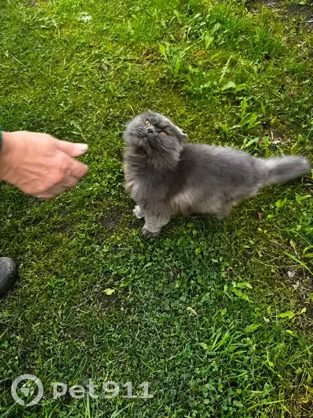 Кошка, пушистая серая. Глаза ярко желтые. Породистая. Ходит в лоток. В стрессе. Плачет, но ласковая. Сидела под домом у соседки и плакала. Не сразу ее заметили.