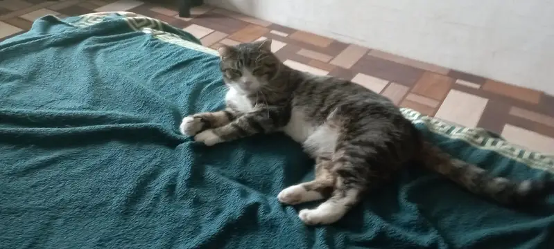 Серый полосатый котик. Взрослый. Некастрирован. Нос окрашен неравномерно Справа серое пятно, поэтому назвали его Носик. Прибился в садоводстве. Сначала был недоверчив. Сейчас трется, мяукает, мурлычет.