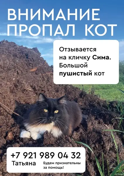 Кот, сиамской породы, появился на нижней базе комплекса активного отдыха "Угребись", примерно в первой половине декабря 2023 года. Очень ухоженный. Поначалу был абсолютно напуган - видел его только по ночам на камерах. Сейчас, 8 января, уже подпускает метров на пять. Имеет трехразовое питание в день. Ссылка на видео - https://disk.yandex.ru/i/KiG-rfCcjiCmMg Ромашкинское сельское поселение, поселок Лосево, Гостиничная улица 2, кафе/отель "Угребись". +7-812-970-55-70 Мой телефон: 8-911-158-11-75 Герман.