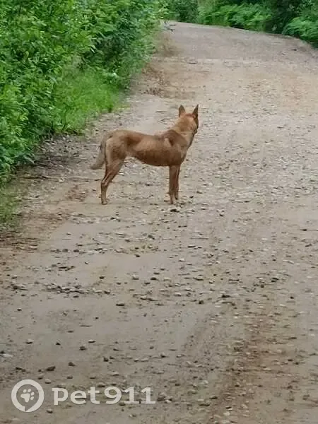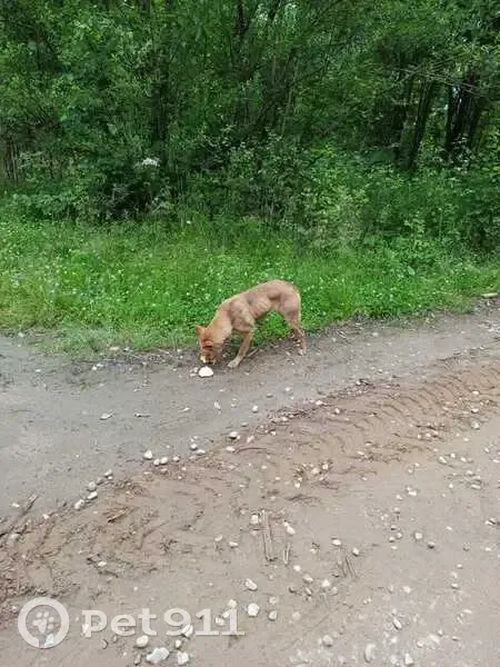 Бегает в лесу в районе бетонки на Краснознаменку, Выборгский район Ленинградской области. Вроде девочка, на вид молодая. Накормить удалось. Поисковик выдал дикую собаку динго, к людям подходит, в машину не идёт, убегает. Поймать не удалось.