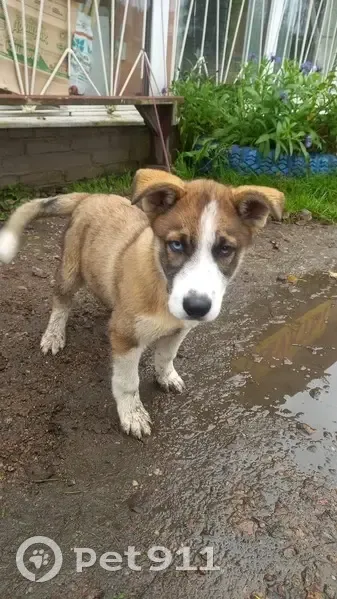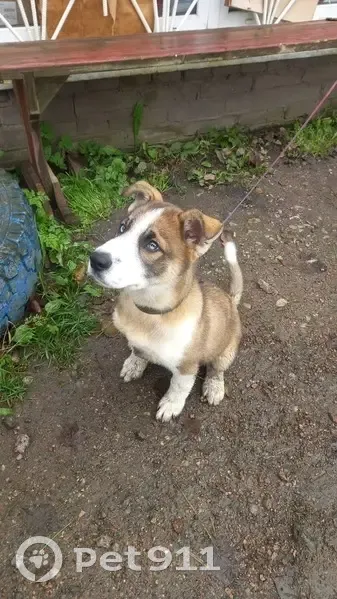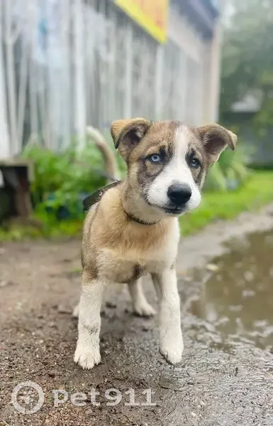 Сегодня в поселке появился щенок (Хаски?) с ошейником, умный , видно что начали учить команды. Ошейник без информации. Окрас бежевый с белым, подпалый. Глаза разного цвета.