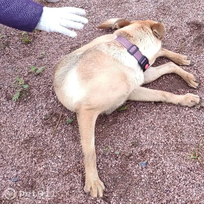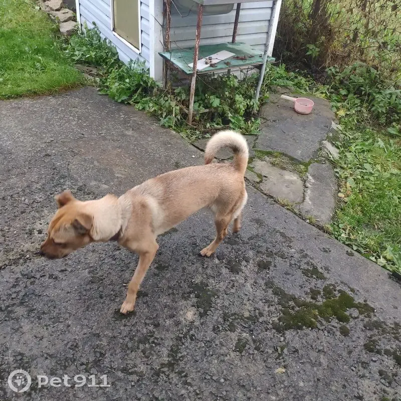 Собака среднего размера. Девочка. В ошейнике с красной кнопочкой. Правый глаз голубой, левый-карий. При ходьбе поджимает заднюю левую лапу. Дружелюбна. Молодая, игривая, энергичная. Видели бегущей по дороге от автотрассы, возможно, выбежала из машины.