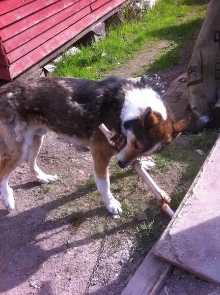 Ленинградская область, Выборгский район, поселок Гаврилово СНТ "Надежда" найден беспородный крупный трехцветный кобель в коричневом ошейнике. Очень контактный и ласковый. Хозяева, найдитесь!