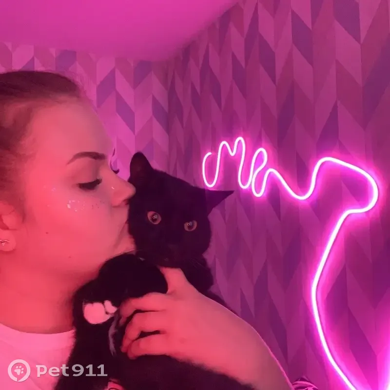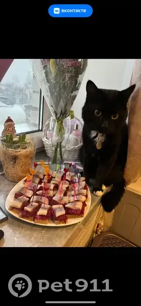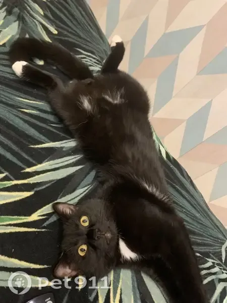 Черный кот, лапки белые и на грудка белая. Желтые глаза. На спине ближе к хвосту есть место с седыми волосами. Был в ошейнике с адресником. На имя свое отзывается, добрый, ручной. К незнакомому человеку подойдут если его позвать по имени. Кот домашний, но на самовыгуле. Пошел вместе со мной до мусорки возле школы и у дома Терзо мы с ним разошлись.