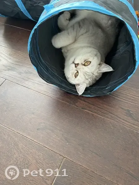 Кот породы шотландская прямоухая, зовут Симба, окрас серебристый, глаза серые, не кастрирован, без ошейника, вышел из дома на прогулку, как обычно, и пропал. Боится людей. Над правым глазом небольшой шрам.