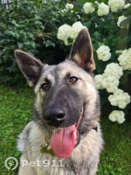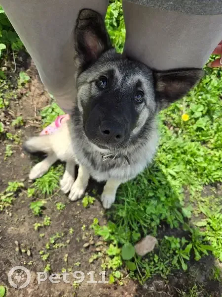 Окрас лайки серый, тёмная мордочка и бровки, тёмные полосы на спинке, хвостик крючком, на кончике белые волоски. В чёрном ошейнике с адресником и серый тонкий ошейник от блох и клещей. Примерно в 23:00 18.08 испугалась громкого соседского салюта, выломала дверь и убежала. Идёт на контакт с людьми, добрая.