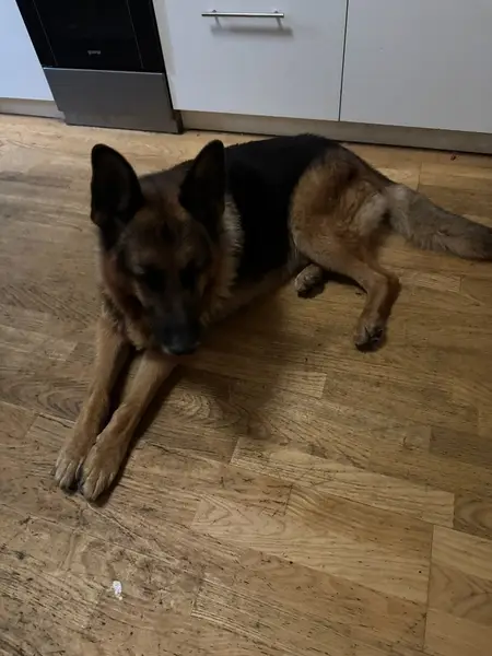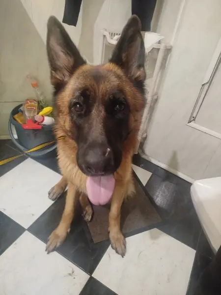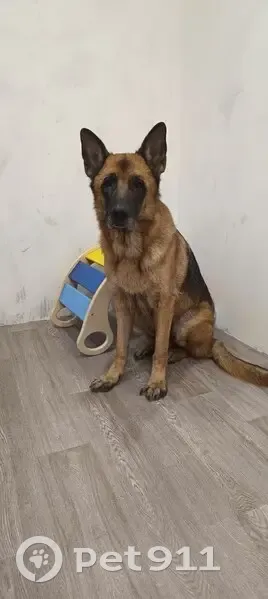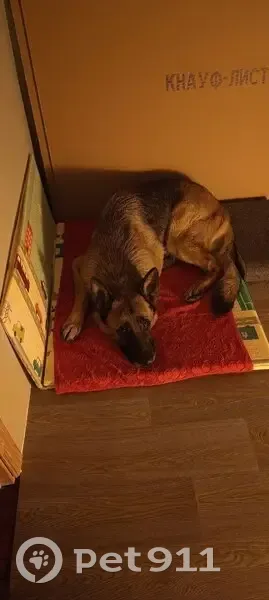 Немецкая овчарка. Коричневый с черным. С ошейником. На ошейнике ручка. У пса атопический дерматит, почти лысый живот, мало шерсти на груди. Труслив. Удерживать не стоит. Но если звать по кличке, скорее в сего будет оставаться рядом. Просьба позвонить по моему номеру в любое время, я сразу приеду! +79052243797 Алина